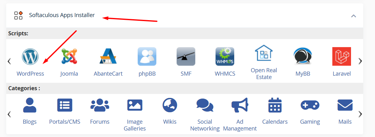 ২। লগিন করার পর আপনি একটু স্কল করলেই Softaculas Apps Instalation নামে একটি অফশন পাবেন এবং সেটার মধ্যে WordPress দেখতে পাবেন।সেখানে ক্লিক করুন।