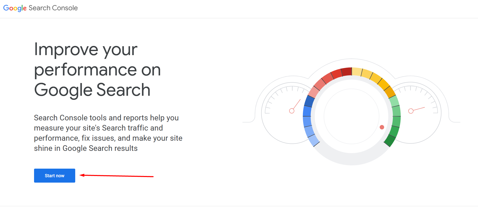 ২। Search Console এর হোম পেজে যাবার পর  Start Now তে ক্লিক করুন।আর হ্যা অবশ্যই আপনার গুগল অ্যাকাউন্ট মানে জিমেইল লগিন রাখবেন।
